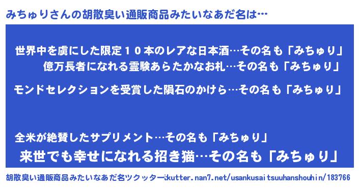 | ヘコむあだ名 | 『みちゅり(震え声)』『みちにゅー』 |
