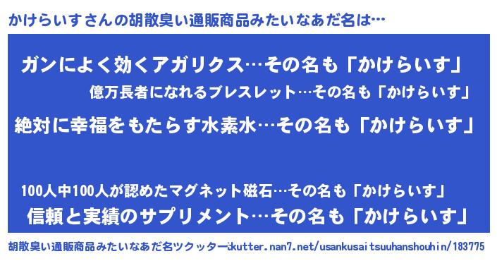 | 意味不明あだ名 | 『永久保存かけらいす』『自称かけらいす』 |