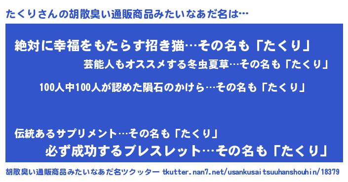 | 欧米人風あだ名 | 『アンジェラ・たくり』『ダニエルたくり』 |