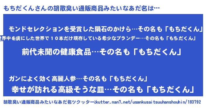 | 意味不明あだ名 | 『永久保存もちだくん』『自称もちだくん』 |