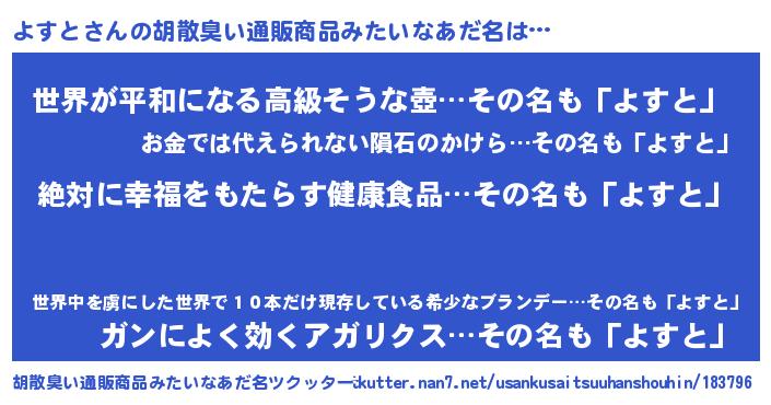 | ヘコむあだ名 | 『よすと(苦笑)』『牛乳』 |