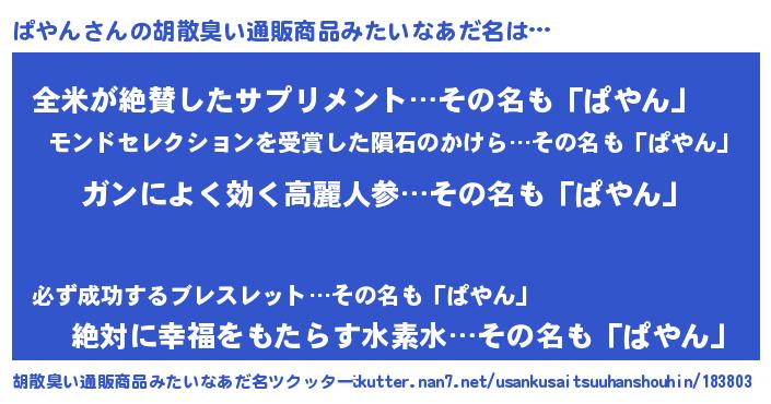 | 意味不明あだ名 | 『自称ぱやん』『とにかく怪しいぱやん』 |