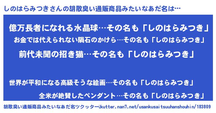 | 意味不明あだ名 | 『永久保存しのはらみつき』 |
