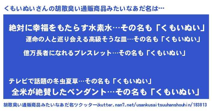 | 肩書あだ名 | 『くもいぬい社長』『くもいぬい少将』 |
