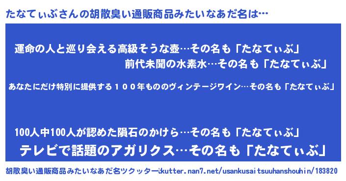 | 恥ずかしいあだ名 | 『たなっちょ』『タナティブデラックス』 |