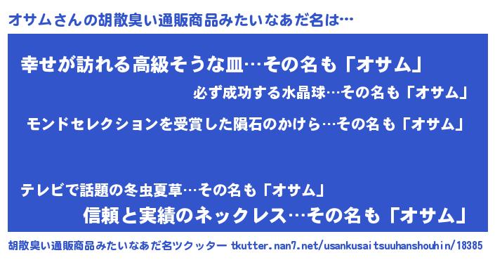 | ヘコむあだ名 | 『酢こんぶ』『オサお』『オサにゅー』 |