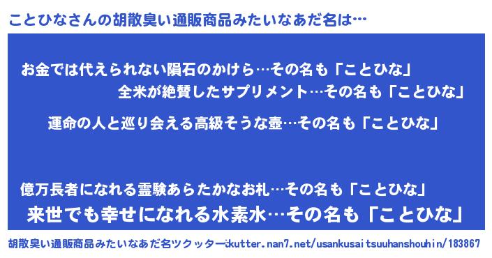 | ヒーロー風カッコイイあだ名 | 『ウルトラことひなマン』『ネオコトヒナ』 |