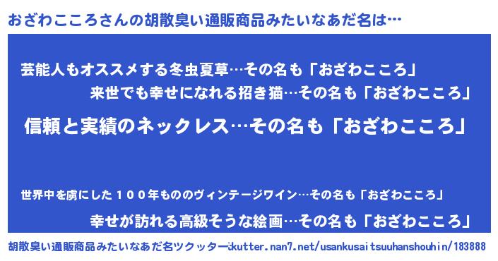 | 意味不明あだ名 | 『とにかく怪しいおざわこころ』 |