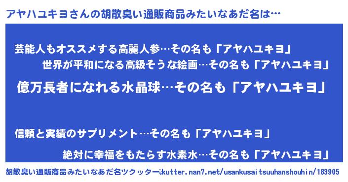 | ヘコむあだ名 | 『アヤもー』『アヤハユキヨ(小並感)』 |