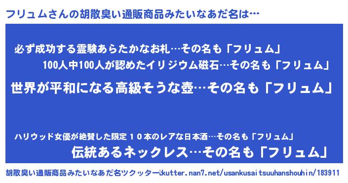| 意味不明あだ名 | 『フリュムフォーエバー』 |