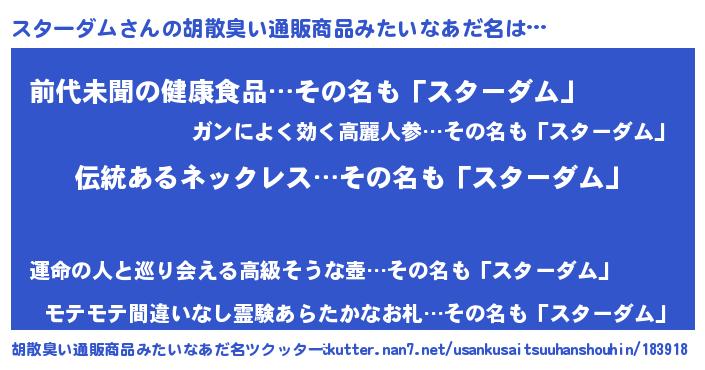 | 意味不明あだ名 | 『とにかく怪しいスターダム』 |