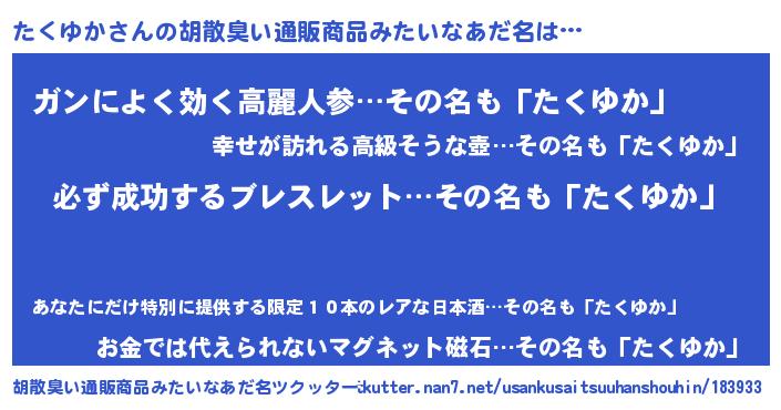 | ヒーロー風カッコイイあだ名 | 『スーパータクユカ』『究極戦士タクユカ』 |