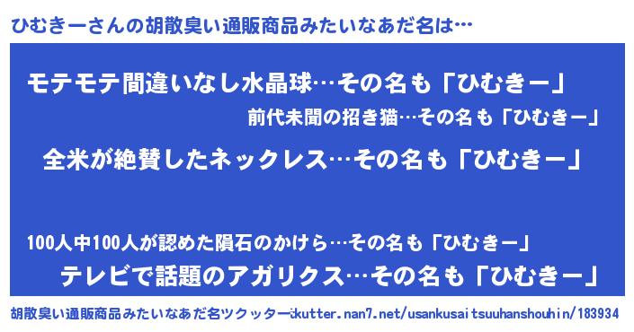 | 意味不明あだ名 | 『とにかく怪しいひむきー』 |