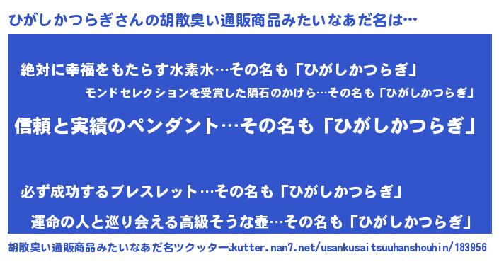 | ヘコむあだ名 | 『ひがっちょ』『ひがしかつらぎ(遠い目)』 |