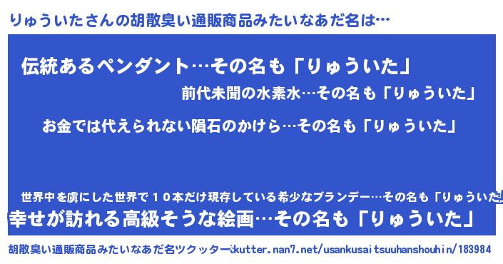 | ヒーロー風カッコイイあだ名 | 『慈愛の使者りゅういた』『銀牙騎士リュ』 |
