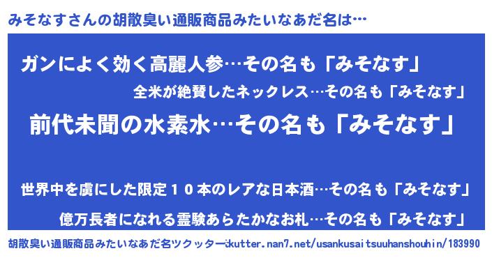 | ヘコむあだ名 | 『みそなす(震え声)』『みそふぇ~』 |