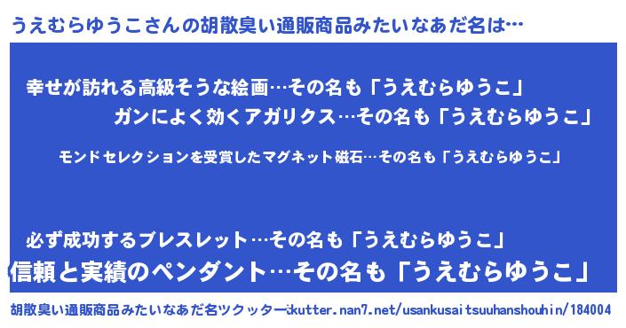 | 意味不明あだ名 | 『眠気覚ましガムうえむらゆうこ味』 |