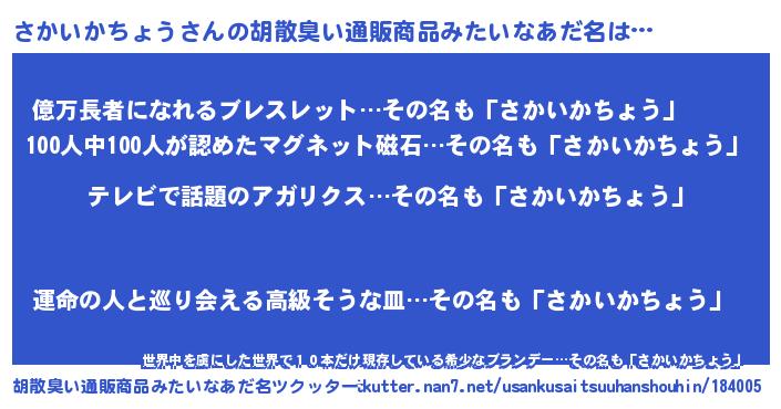| ヒーロー風カッコイイあだ名 | 『最強戦士サカイカチョウ』 |