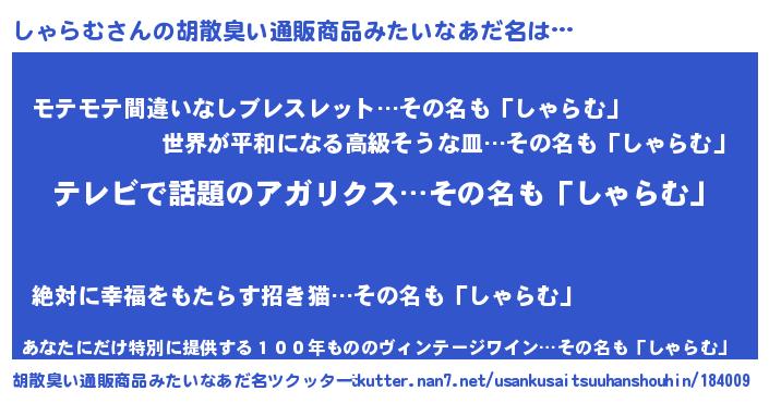 | 意味不明あだ名 | 『自称しゃらむ』『ペロリンしゃらむ』 |