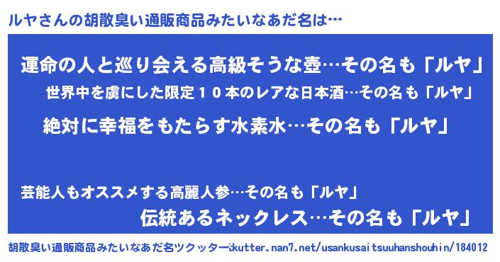 | 恥ずかしいあだ名 | 『ルヤちん』『ルヤっちょ』 |