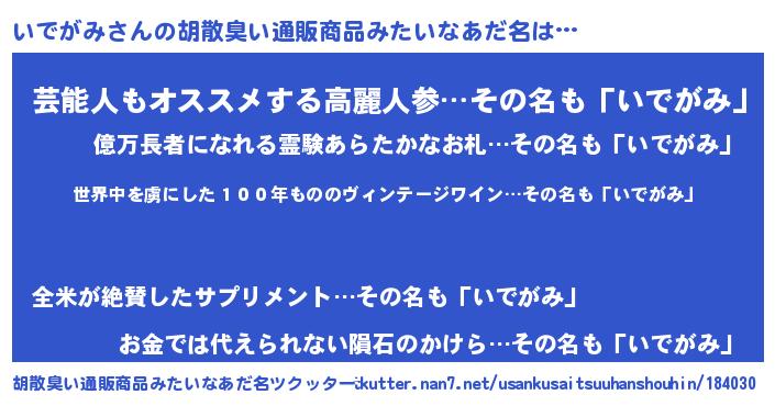 | 意味不明あだ名 | 『住所不定無職いでがみ(12歳)』 |
