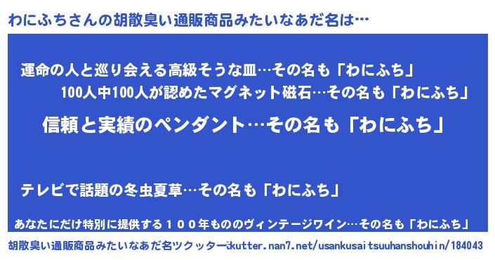 | 意味不明あだ名 | 『とにかく怪しいわにふち』 |