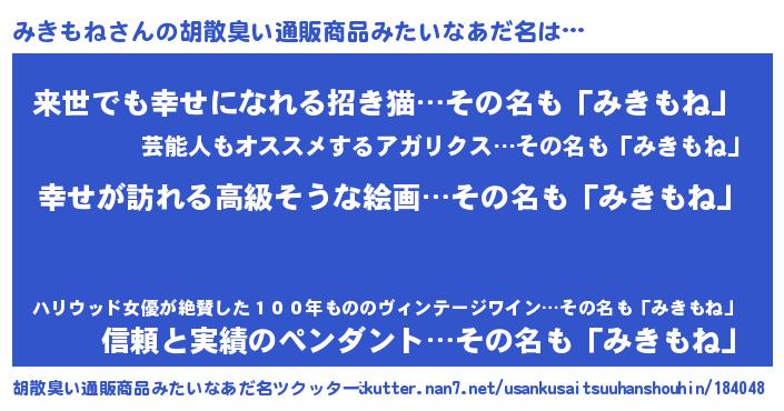 | 欧米人風あだ名 | 『アンジェラ・みきもね』 |