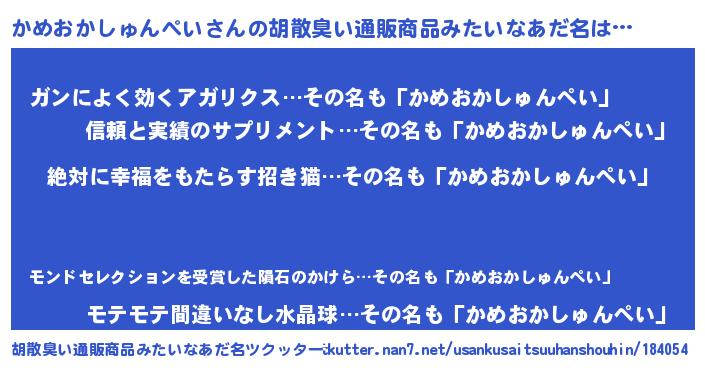 | ヘコむあだ名 | 『かめおかしゅんぺい(笑)』『かめもー』 |