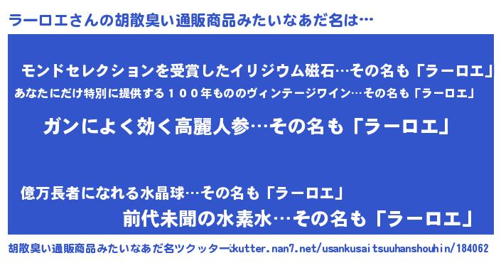 | 女子向けラノベタイトル風あだ名 | 『ラーロエなんてお断りですっ。』 |