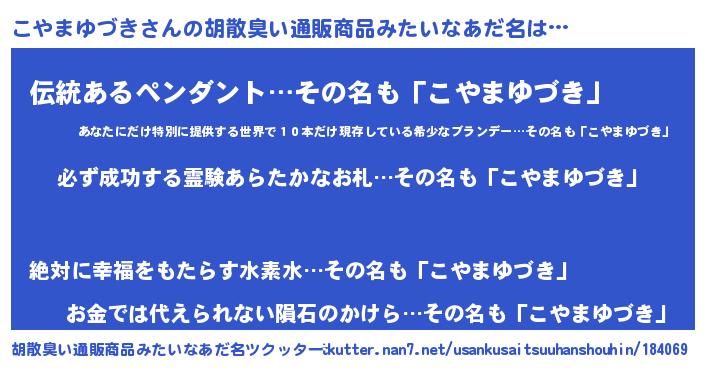 | 伝説のあだ名 | 『伝説のスナイパーこやまゆづき』 |
