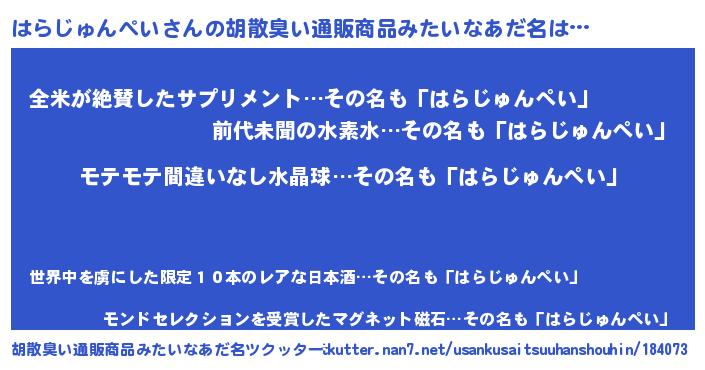 | 恥ずかしいあだ名 | 『プリティーはらじゅんぺい』『はらちん』 |
