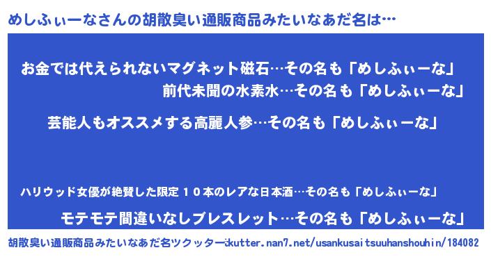 | 意味不明あだ名 | 『自称めしふぃーな』 |