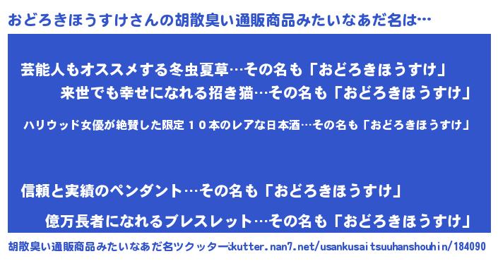 | 意味不明あだ名 | 『住所不定無職おどろきほうすけ(59歳)』 |