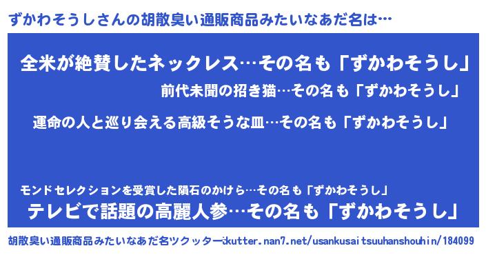 | 意味不明あだ名 | 『ずかわそうしフォーエバー』 |