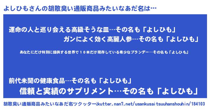 | 意味不明あだ名 | 『住所不定無職よしひも(95歳)』 |
