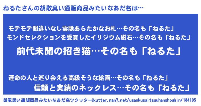 | 欧米人風あだ名 | 『ダルビッシュねるた』『マイケルねるた』 |