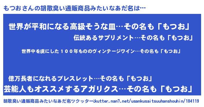 | 欧米人風あだ名 | 『トリンドルもつお』『ダレノガレもつお』 |