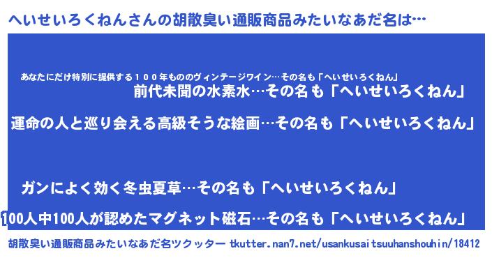 | 意味不明あだ名 | 『へいせいろくねんフォーエバー』 |