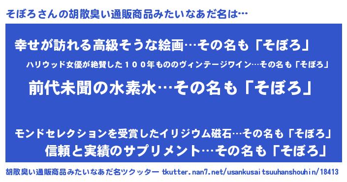 | ヒーロー風カッコイイあだ名 | 『ネオソボロ』『ウルトラそぼろマン』 |