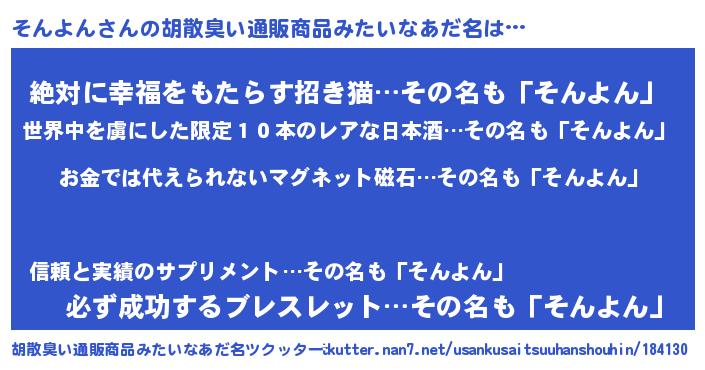 | ヘコむあだ名 | 『そんよん(小並感)』『そんもー』 |