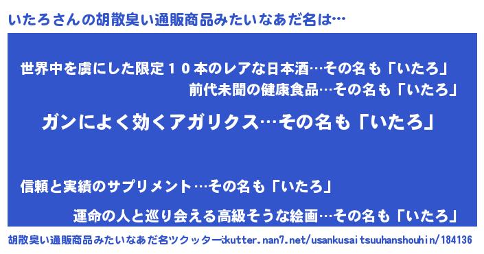 | 欧米人風あだ名 | 『トリンドルいたろ』『ダレノガレいたろ』 |