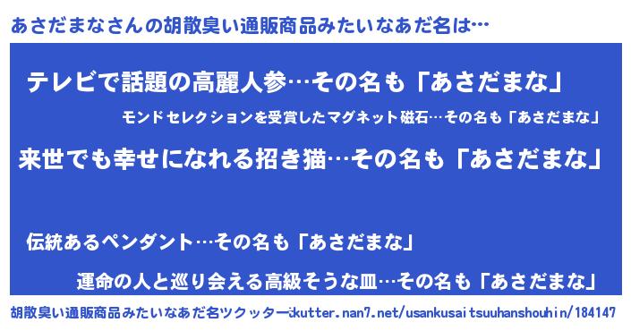 | 意味不明あだ名 | 『永久保存あさだまな』『自称あさだまな』 |