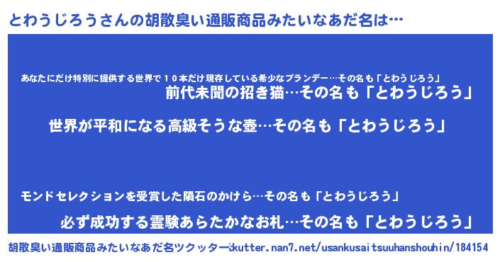 | 意味不明あだ名 | 『とわうじろうフォーエバー』 |