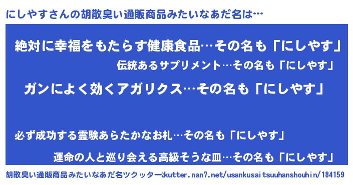 | 意味不明あだ名 | 『自称にしやす』『つくし科にしやす属』 |