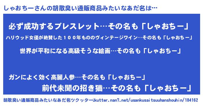 | 欧米人風あだ名 | 『しゃおちークリステル』 |
