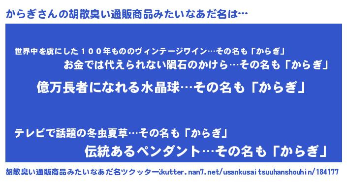 | 欧米人風あだ名 | 『アンジェラ・からぎ』『マイケルからぎ』 |