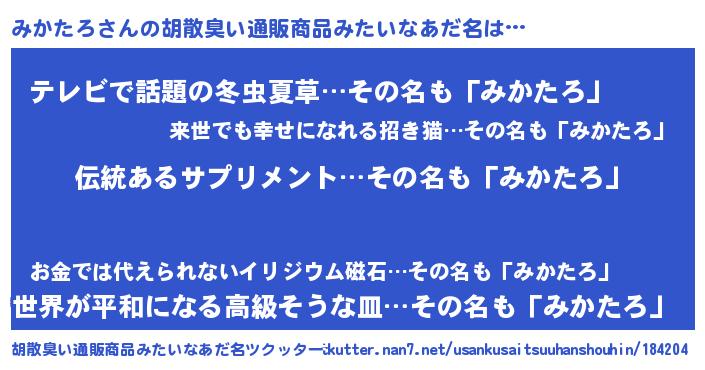 | 意味不明あだ名 | 『とにかく怪しいみかたろ』 |