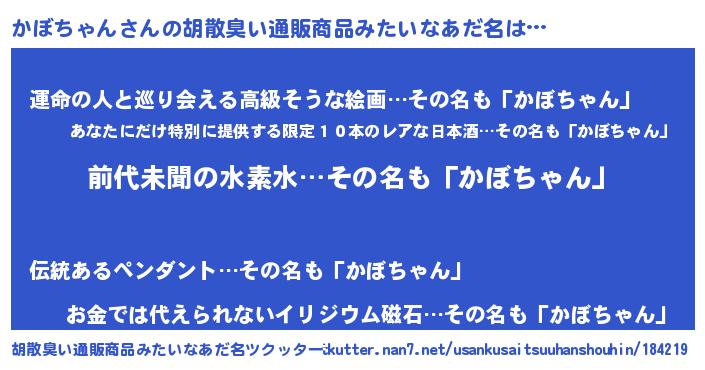| 意味不明あだ名 | 『ニラ科かぼちゃん属』 |