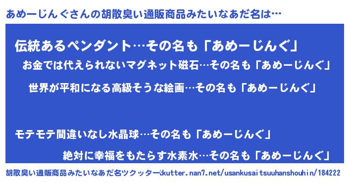 | 欧米人風あだ名 | 『あめーじんぐクリステル』 |