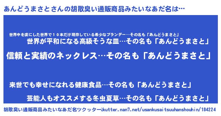 | 意味不明あだ名 | 『とにかく怪しいあんどうまさと』 |